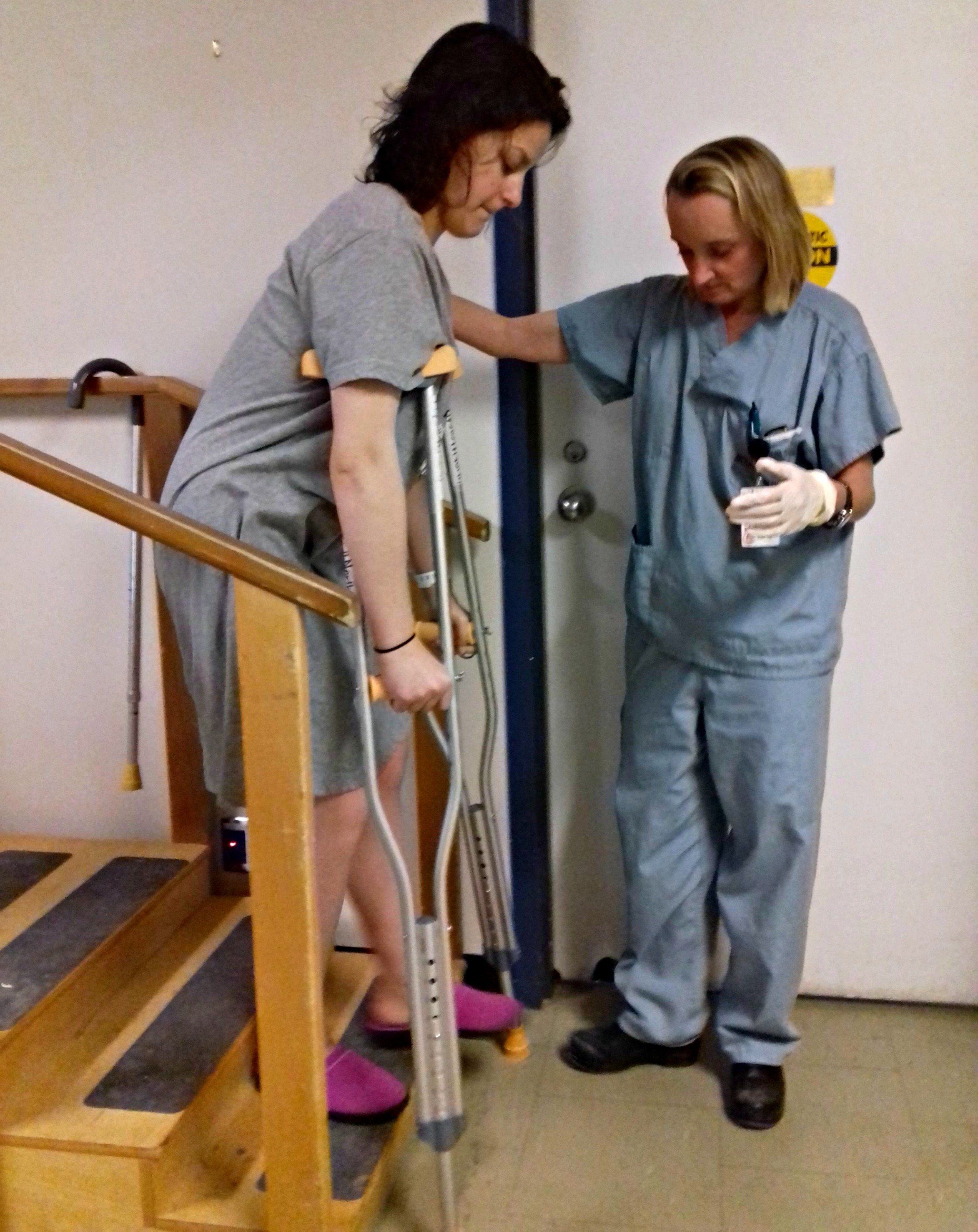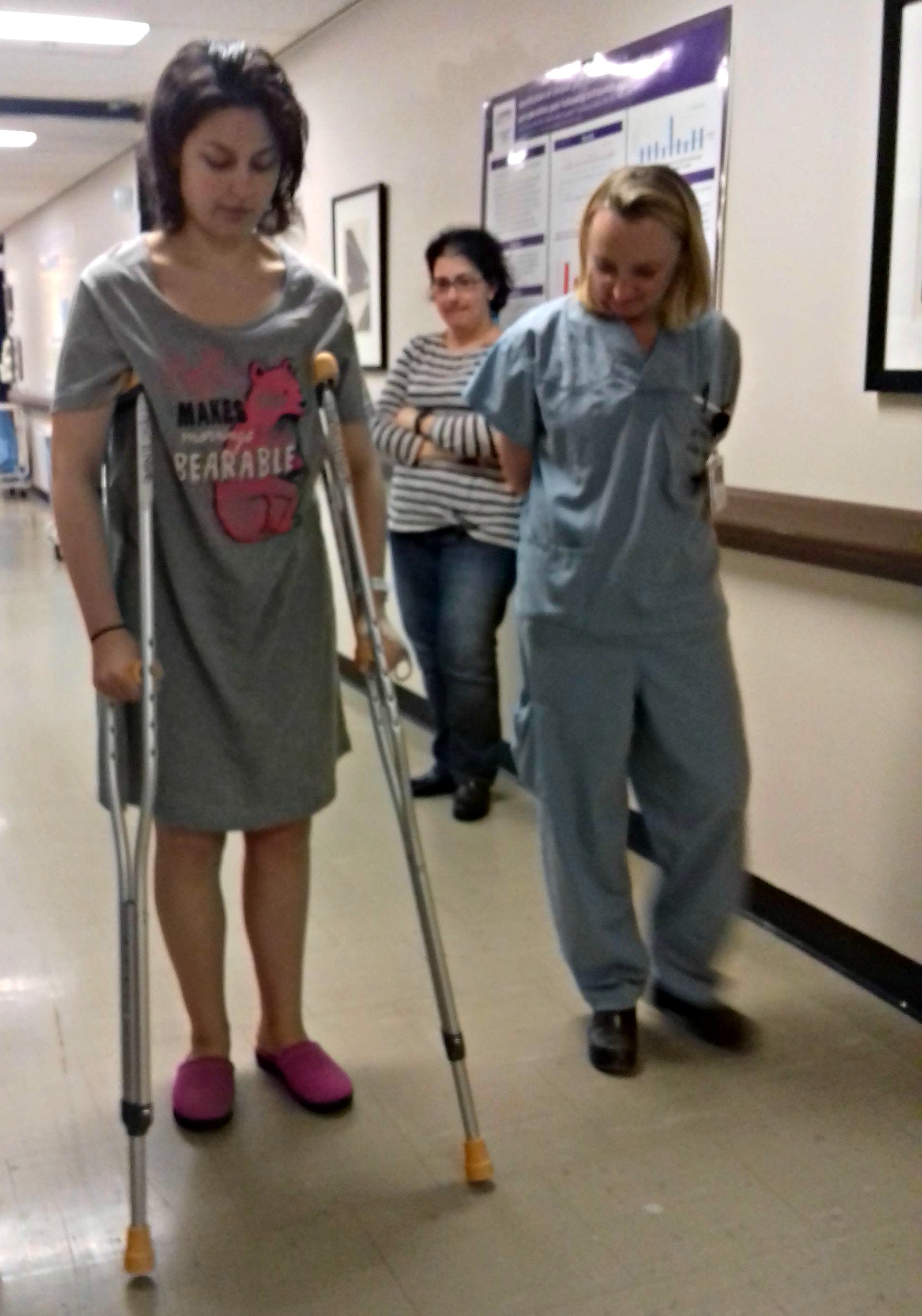 The physiotherapist was so excited to see me “graduate” from a walker to crutches so soon, she asked if I was ready to walk in the hall.