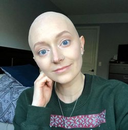 The room was set up with tables and chairs in a C-shape classroom style manner and so I faced the other half of the women. I noticed the women across from me all went without anything on their bald heads so I decided to take off my little cap— I felt like I fit in with my bald head for once and figured since I go through hot flashes and sit sweating half the time that this would be a great opportunity to cool down too! (Haha).