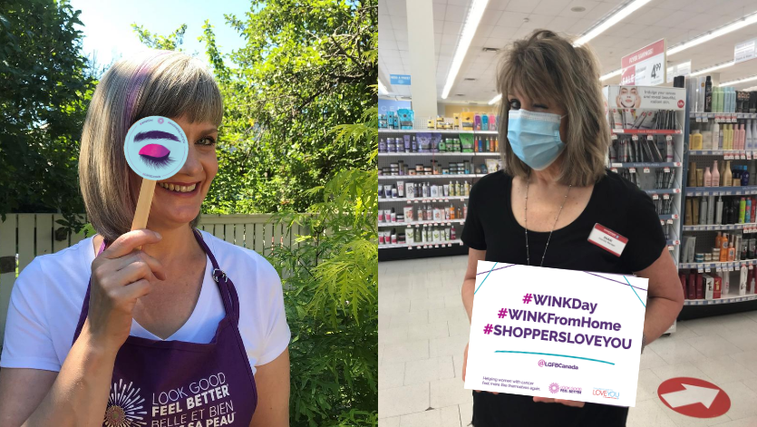 Both Shari and Erinn, who live in opposite ends of the country, take great pride in being a Look Good Feel Better volunteer and Shoppers Drug Mart employees. Shari notes that, “if you WINK, you tend to smile, which to me, is a universal signal. Even under a mask and during COVID, we can support women facing cancer just by taking a selfie when we WINK.”